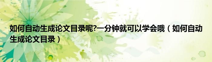 关于如何自动生成论文目录呢?一分钟就可以学会哦,如何自动生成论文目录这个很多人还不知道,今天菲菲来为大家解答以上的问题,现在让我们一起来看看吧!