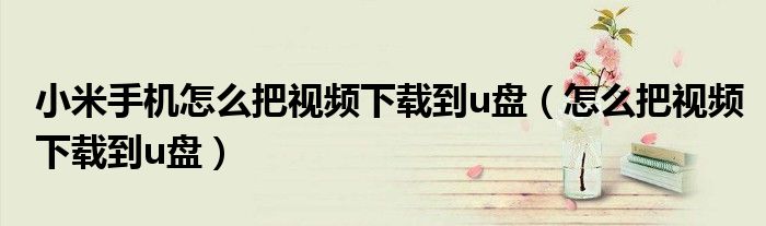 关于小米手机怎么把视频下载到u盘,怎么把视频下载到u盘这个很多人还不知道,今天菲菲来为大家解答以上的问题,现在让我们一起来看看吧!