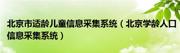 关于北京市适龄儿童信息采集系统,北京学龄人口信息采集系统这个很多人还不知道,今天菲菲来为大家解答以上的问题,现在让我们一起来看看吧!