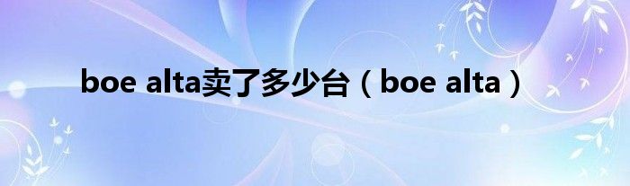 boe alta卖了多少台,boe alta很多人还不知道,乐乐来为大家解答以上问题,现在让我们一起来看看吧!