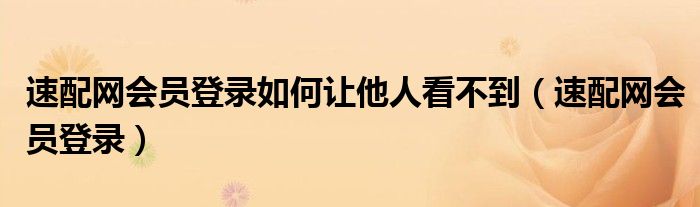 速配网会员登录如何让他人看不到(速配网会员登录)