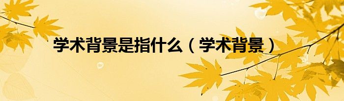 关于学术背景是指什么,学术背景这个很多人还不知道,今天菲菲来为大家解答以上的问题,现在让我们一起来看看吧!