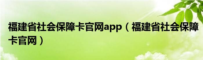 福建省社会保障卡官网app(福建省社会保障卡官网)