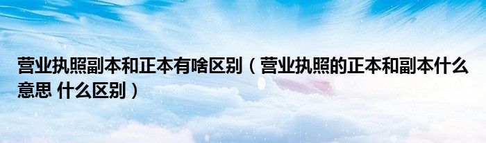关于营业执照副本和正本有啥区别,营业执照的正本和副本什么意思 什么区别这个很多人还不知道,今天菲菲来为大家解答以上的问题,现在让我们一起来看看吧!