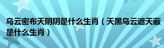 大家好,雨雨来为大家解答以上问题,乌云密布天阴阴是什么生肖,天黑乌云遮天蔽是什么生肖很多人还不知道,现在让我们一起来看看吧!