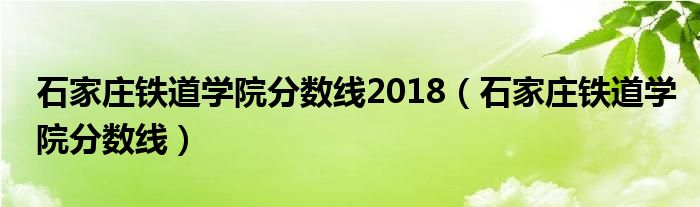 关于石家庄铁道学院分数线2018,石家庄铁道学院分数线这个很多人还不知道,今天菲菲来为大家解答以上的问题,现在让我们一起来看看吧!