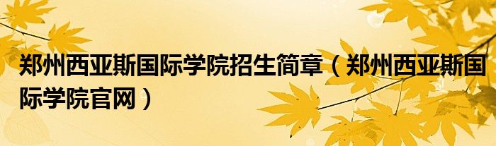 关于郑州西亚斯国际学院招生简章,郑州西亚斯国际学院官网这个很多人还不知道,今天菲菲来为大家解答以上的问题,现在让我们一起来看看吧!