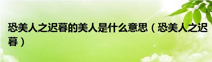 关于恐美人之迟暮的美人是什么意思,恐美人之迟暮这个很多人还不知道,今天菲菲来为大家解答以上的问题,现在让我们一起来看看吧!
