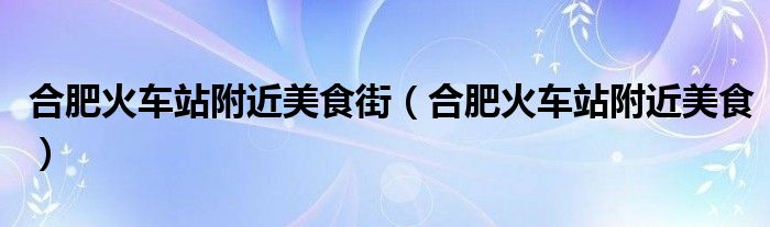 关于合肥火车站附近美食街,合肥火车站附近美食这个很多人还不知道,今天菲菲来为大家解答以上的问题,现在让我们一起来看看吧!