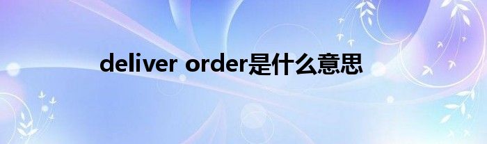 关于deliver order是什么意思这个很多人还不知道,今天菲菲来为大家解答以上的问题,现在让我们一起来看看吧!