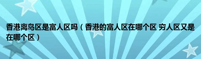 关于香港离岛区是富人区吗,香港的富人区在哪个区 穷人区又是在哪个区这个很多人还不知道,今天菲菲来为大家解答以上的问题,现在让我们一起来看看吧!