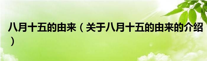 大家好,小都来为大家解答以上的问题。八月十五的由来,关于八月十五的由来的介绍很多人还不知道,现在让我们一起来看看吧!
