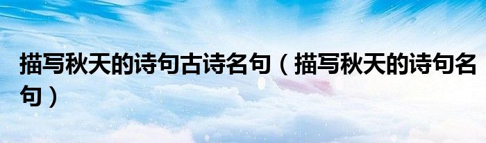 关于描写秋天的诗句古诗名句,描写秋天的诗句名句这个很多人还不知道,今天菲菲来为大家解答以上的问题,现在让我们一起来看看吧!