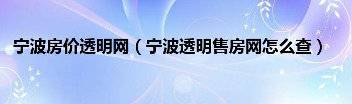 宁波房价透明网(宁波透明售房网怎么查)