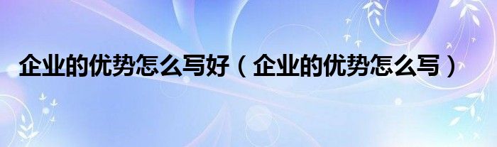 关于企业的优势怎么写好,企业的优势怎么写这个很多人还不知道,今天菲菲来为大家解答以上的问题,现在让我们一起来看看吧!