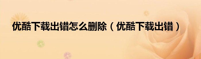 大家好,来宝来为大家解答以下问题,优酷下载出错怎么删除,优酷下载出错很多人还不知道,今天让我们一起来看看吧!