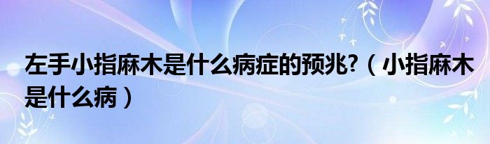 大家好,linda来为大家解答以上的问题。左手小指麻木是什么病症的预兆?,小指麻木是什么病很多人还不知道,现在让我们一起来看看吧!