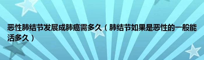 大家好,linda来为大家解答以上的问题。恶性肺结节发展成肺癌需多久,肺结节如果是恶性的一般能活多久很多人还不知道,现在让我们一起来看看吧!