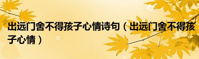 大家好,小晋来为大家解答以下问题,关于出远门舍不得孩子心情诗句,出远门舍不得孩子心情很多人还不知道,今天让我们一起来看看吧!