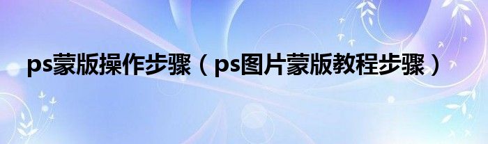 ps蒙版操作步骤(ps图片蒙版教程步骤)