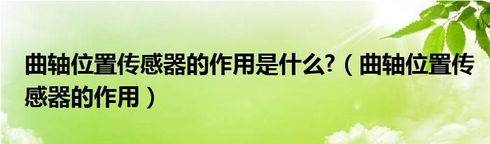 大家好,小晋来为大家解答以下问题,关于曲轴位置传感器的作用是什么?,曲轴位置传感器的作用很多人还不知道,今天让我们一起来看看吧!