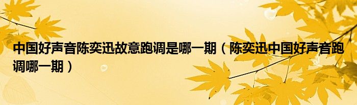 大家好,小晋来为大家解答以下问题,关于中国好声音陈奕迅故意跑调是哪一期,陈奕迅中国好声音跑调哪一期很多人还不知道,今天让我们一起来看看吧!