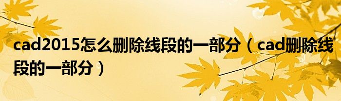 cad2015怎么删除线段的一部分(cad删除线段的一部分)