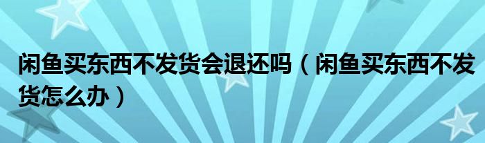 大家好,跳跳为你解答以上问题。闲鱼买东西不发货会退还吗,闲鱼买东西不发货怎么办这个问题很多人还不知道,现在让我们一起来看看吧!