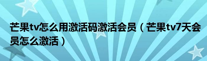 大家好,跳跳为你解答以上问题。芒果tv怎么用激活码激活会员,芒果tv7天会员怎么激活这个问题很多人还不知道,现在让我们一起来看看吧!