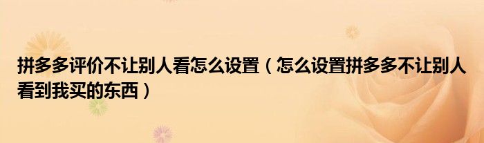 大家好,跳跳为你解答以上问题。拼多多评价不让别人看怎么设置,怎么设置拼多多不让别人看到我买的东西这个问题很多人还不知道,现在让我们一起来看看吧!