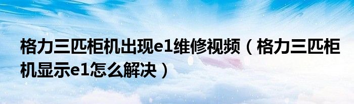 大家好,小叶为你解答以上问题。格力三匹柜机出现e1维修视频,格力三匹柜机显示e1怎么解决这个问题很多人还不知道,现在让我们一起来看看吧!