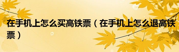 大家好,跳跳为你解答以上问题。在手机上怎么买高铁票,在手机上怎么退高铁票这个问题很多人还不知道,现在让我们一起来看看吧!