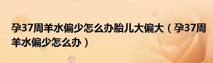 大家好,linda来为大家解答以上的问题。孕37周羊水偏少怎么办胎儿大偏大,孕37周羊水偏少怎么办很多人还不知道,现在让我们一起来看看吧!