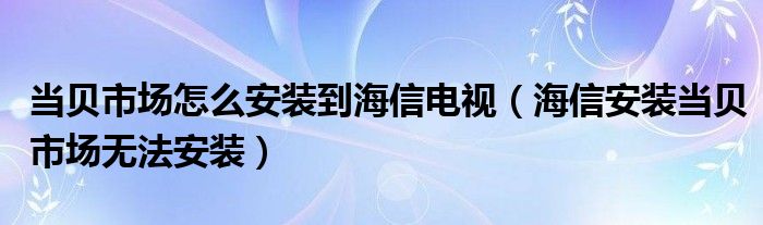 大家好,跳跳为你解答以上问题。当贝市场怎么安装到海信电视,海信安装当贝市场无法安装这个问题很多人还不知道,现在让我们一起来看看吧!