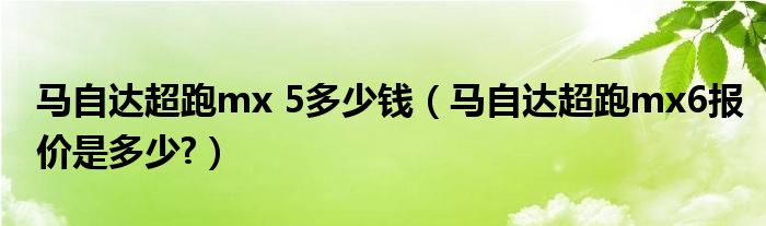 大家好,小美来为大家解答以上问题。马自达超跑mx 5多少钱,马自达超跑mx6报价是多少?很多人还不知道,现在让我们一起来看看吧!