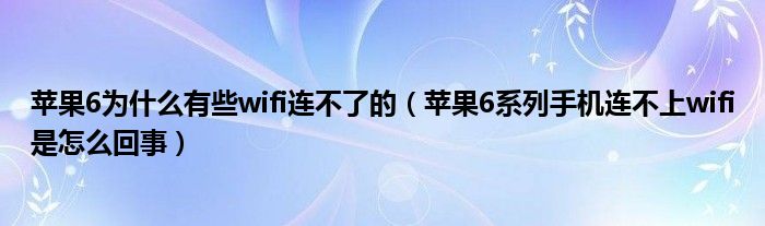 关于苹果6为什么有些wifi连不了的,苹果6系列手机连不上wifi是怎么回事这个很多人还不知道,今天菲菲来为大家解答以上的问题,现在让我们一起来看看吧!