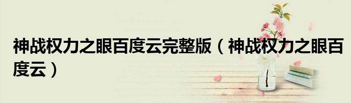 关于神战权力之眼百度云完整版,神战权力之眼百度云这个很多人还不知道,今天菲菲来为大家解答以上的问题,现在让我们一起来看看吧!