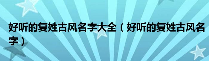 关于好听的复姓古风名字大全,好听的复姓古风名字这个很多人还不知道,今天菲菲来为大家解答以上的问题,现在让我们一起来看看吧!