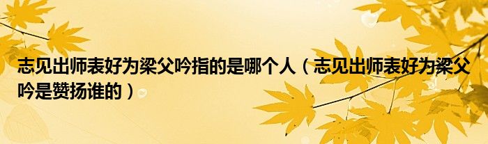关于志见出师表好为梁父吟指的是哪个人,志见出师表好为梁父吟是赞扬谁的这个很多人还不知道,今天菲菲来为大家解答以上的问题,现在让我们一起来看看吧!