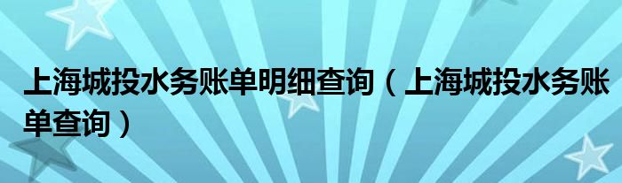 上海城投水务账单明细查询(上海城投水务账单查询)
