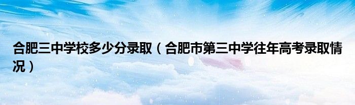 合肥三中学校多少分录取(合肥市第三中学往年高考录取情况)