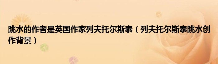 关于跳水的作者是英国作家列夫托尔斯泰,列夫托尔斯泰跳水创作背景这个很多人还不知道,今天菲菲来为大家解答以上的问题,现在让我们一起来看看吧!