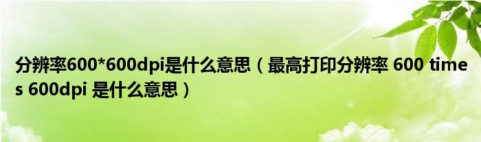 关于分辨率600*600dpi是什么意思,最高打印分辨率 600 times 600dpi 是什么意思这个很多人还不知道,今天菲菲来为大家解答以上的问题,现在让我们一起来看看吧!