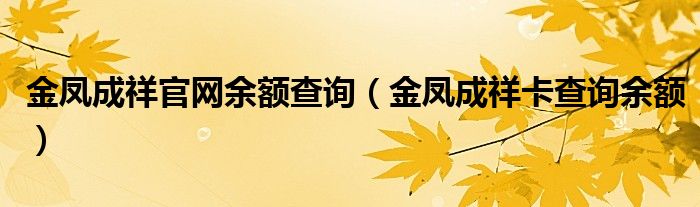 金凤成祥官网余额查询(金凤成祥卡查询余额)