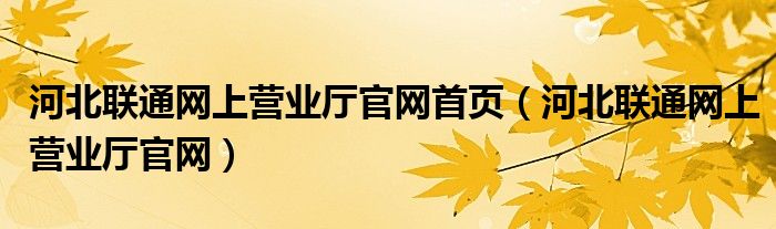 河北联通网上营业厅官网首页(河北联通网上营业厅官网)