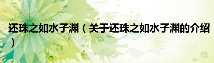 大家好,今天小乐来为大家解答以上的问题。还珠之如水子渊,关于还珠之如水子渊的介绍很多人还不知道,现在让我们一起来看看吧!