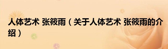 人体艺术 张筱雨(关于人体艺术 张筱雨的介绍)