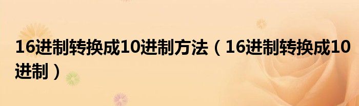 关于16进制转换成10进制方法,16进制转换成10进制这个很多人还不知道,今天菲菲来为大家解答以上的问题,现在让我们一起来看看吧!