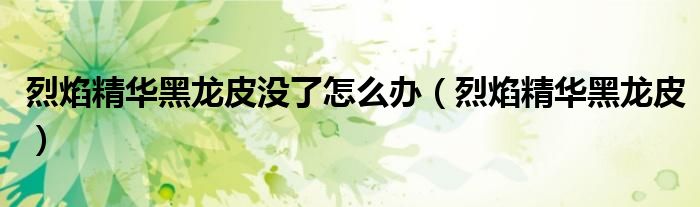 烈焰精华黑龙皮没了怎么办(烈焰精华黑龙皮)