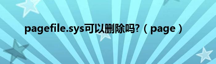关于pagefile.sys可以删除吗?,page这个很多人还不知道,今天菲菲来为大家解答以上的问题,现在让我们一起来看看吧!